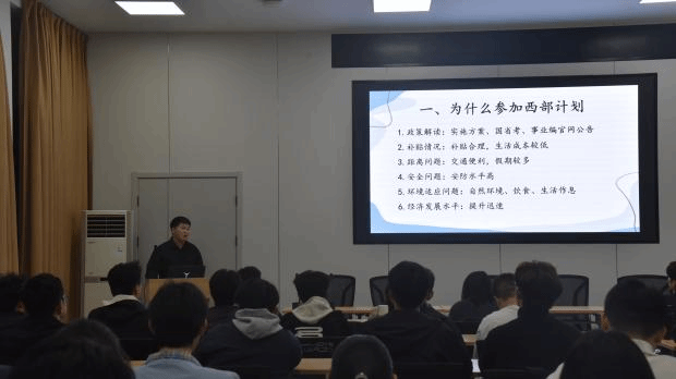 为引导广大青年学子响应国家号召,进一步引导青年学生树立正确的就业观、成才观,鼓励广大毕业生扎根基层、建功西部,积极投身国家西部建设发展大局,3月23日,自动化与电气工程学院举办大学生志愿服务西部计划宣讲会。